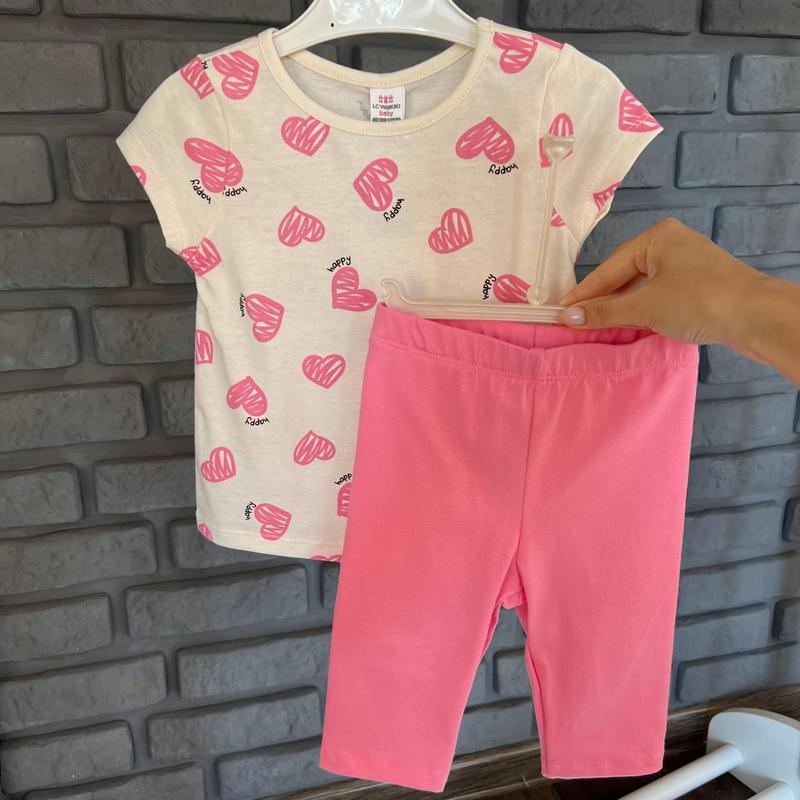 Дитячий костюм футболка (біла з сердечками) та легінси (рожеві) lc waikiki 9-12міс (74-80с...