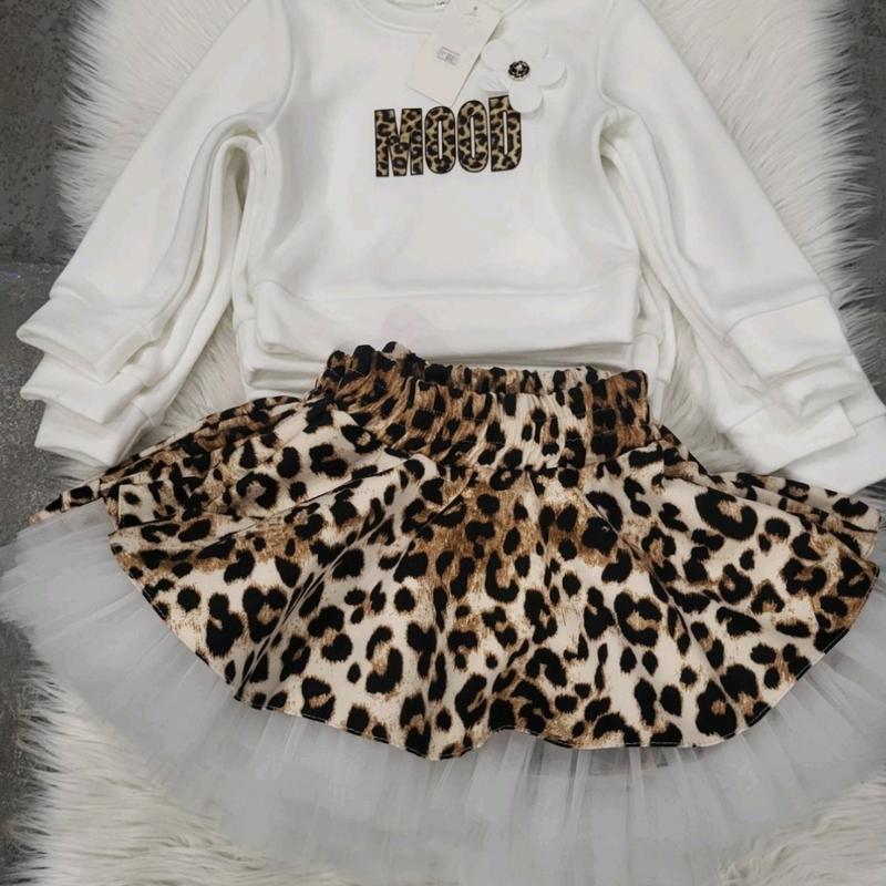 трендовий костюм з леопардовий принтом та юбкою. м'якенька кофтинка і нарядна юбка з фатіном