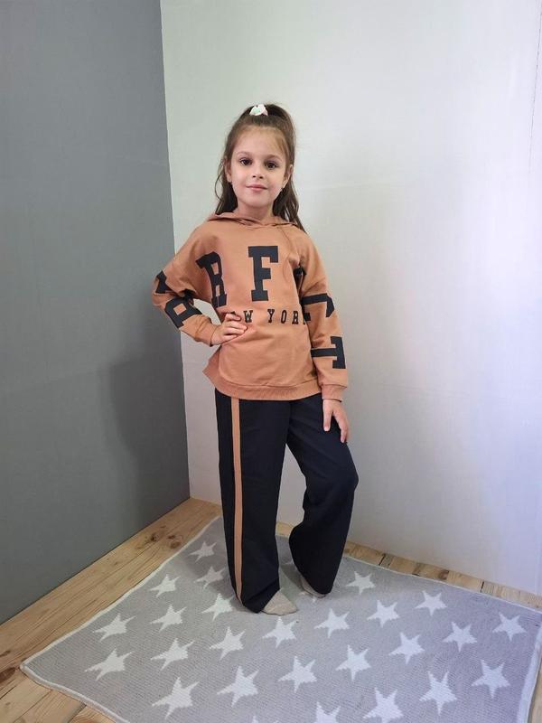 Стильний костюм для дівчинки - худі оверсайз та має капюшон, штани палаццо Виробництво Туреччина Тканина - 80% котон, 15% поліестер, 5%еластан Розмір вказаний на 10/11 років (146 см), але маломірить і фактично йде на зріст 134 см Заміри на 134 см Худі - довжина 51 см, рукав від горловини 53 см, пог 42 см Штани - довжина 81 см, крок 60 см, стегна 41 см, в поясі - резинка Розмір вказаний на 14/15 років (170 см), але маломірить і фактично йде на зріст 158 см Заміри на 158 см Худі - довжина 59 см, рукав від горловини 61 см, пог 47 см Штани - довжина 93 см, крок 69 см, стегна 45 см, в поясі - резинка
