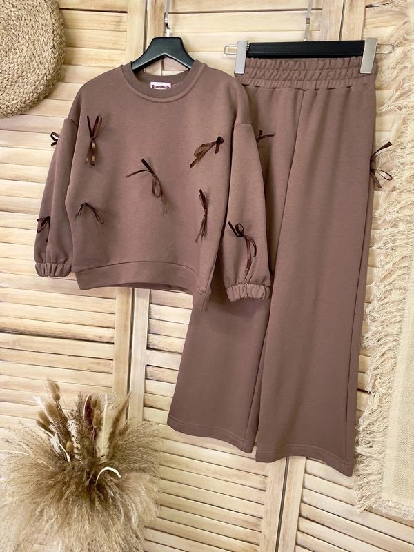 Крутой костюм с игривыми бантиками Штаны палаццо в поясе под резинку Ткань качественная турецкая двухнить-петля Хорошее качество! Цена 1080 грн Рост/длин.свитшота/пог/рукав от горловины/длин.штанов/шаг/пот/пос похибка+-2см 128-134/45/45/49/80/58/24/40-2шт 134-140/46/46/52/84/61/25/41-4шт 140-146/48/47/55/88/64/26/43-4шт 146-152/50/49/57/91/67/27/44-1шт 152-158/52/50/59/95/71/28/45 -немає 158-164/55/52/63/99/73/29/46-2шт