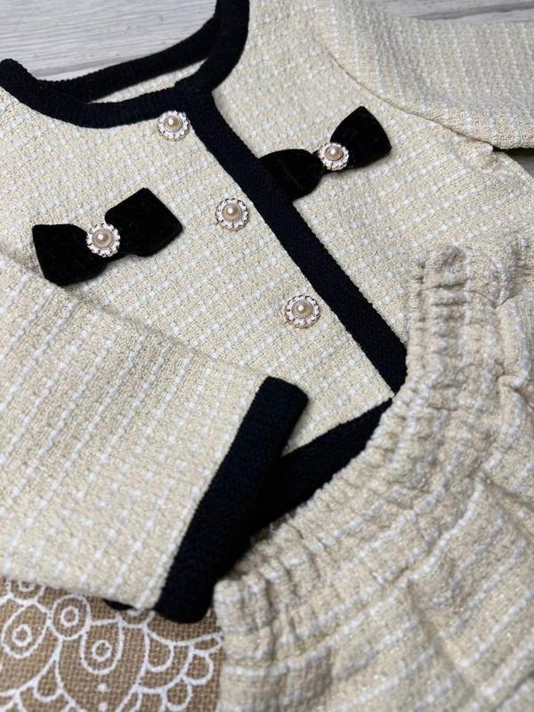Невероятно стильный и изысканный костюм Ткань – твид Пиджак + юбка (подклад – шифоновые шорты), ребенку будет очень удобно отличное качество, замер рукава от плеча ЗАМЕРЫ: 90р: кофта – длина 28см, ширина 29см, рукав – 29см; юбка – длина 25см, талия 18см; 100р: кофта – длина 30см, ширина 30см, рукав – 32см; юбка – длина 26см, талия 19см;