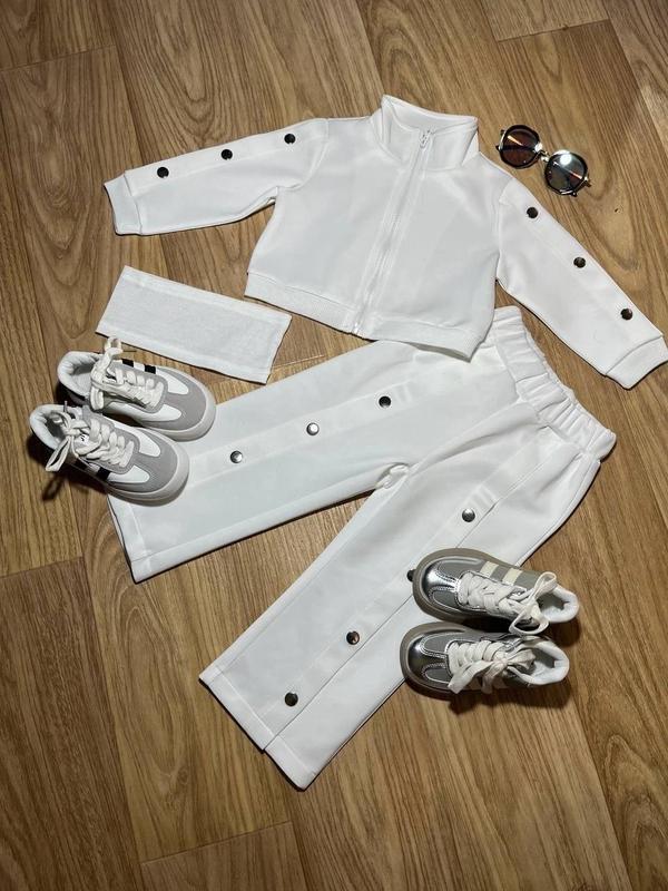 Трійка з топ+кофта+штанці Якість чудова Кофта на змійці, рукава розтібаються заклепками Штани на резинці, до низу розтібаються заклепками Заміри 90р-кофта довж 26см,ширина 32см,рукав від горла 35см;штани довж 54см,крок 34см;топ висота 9см,шир 22см 100р-кофта довж 29см,ширина 34см,рукав від горла 38см;штани довж 59см,крок 39см;топ висота 11см,шир 24см 120р-кофта довж 33см,ширина 36см,рукав від горла 43см;штани довж 70см,крок 47см;топ висота 11см,шир 26см 130р-кофта довж 34см,ширина 37см,рукав від горла 45см;штани довж 73см,крок 50см;топ висота 13см,шир 27см