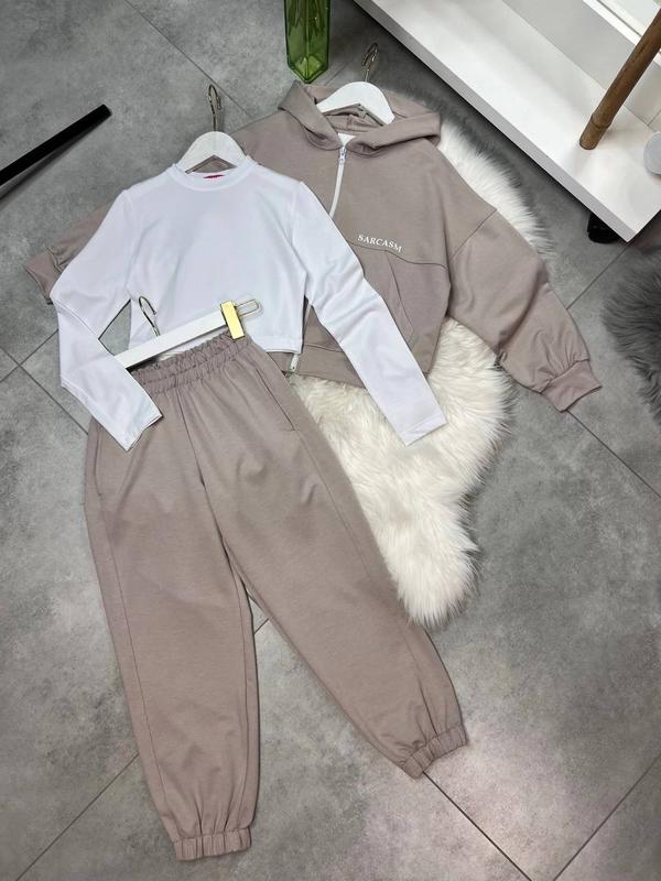 Стильна весняна новинка Костюмчик 3-ка, кофтинка на блискавці з капюшоном та кишенями, лонг та штанці, Якість топ! Тканина двухнитка і супрем. Довжина кофти/ пог/ рукав від горловини /довжина лонг/ пог лонг/ рукав від плеча лонг/ довжина штанів /крок/ пот/ поб 140 / 47 / 50 / 58 / 35/ 35/ 52/ 78/ 57/ 28/ 43/ 146/48/52/60/36/36/55/81/59/29/44 152/50/55/62/38/37/58/85/61/30/45 158/52/57/66/39/38/59/90/65/31/47 164/54/59/70/40/39/60/95/69/31/49