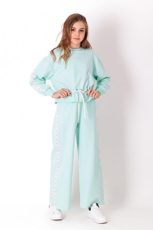 Стильний повсякденний костюм на дівчинку Колір світла м'ята. Брюки палаццо, вкорочений світшот оверсайз. Виробник український бренд Mevis.