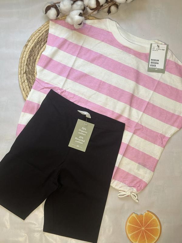 Чудовий легенький комплект для красунь 😍 Блузочка-футбрлка вільна та велосипедки(легінси)! На кожен день, буде як знахідка👍🏼 ✔️H&M ✔️розмір 11-13років (152cm) (підійде на дорослу хs заміри нижче) Заміри: Довжина футболки: 45 см ПОГ: 45 см Довжина шортів: 35 см. ПОТ: 25 см...