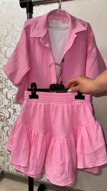 Стильний костюм трійка для модниці Тканина муслін, топ рубчик Шорти-спідничка в поясі на резинці Сорочка на короткий рукав застібається на гудзики РЕКОМЕНДУЮ 😍 заміри:довж.сорочки/пог/довж. топа/пог/довж.спідн./пояс 140-38/43/30/32/30/24 146-39/45/33/33/32/25 152-43/47/34/37/33/26 158-46/48/35/38/34/27 +-2см При оформленні замовлення через кнопку Купити повна оплата, обов'язково уточнюйте наявність розміру
