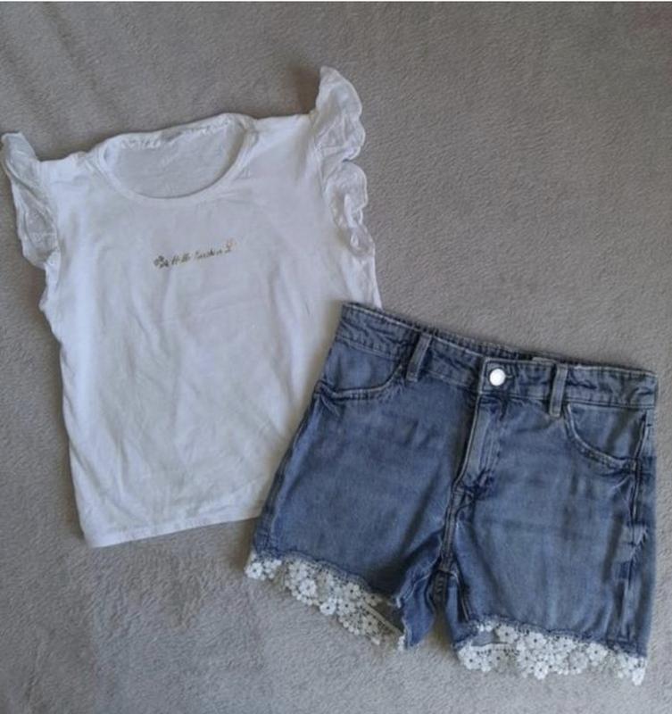 Ніжний набір на літо з кружевом, мережево 122 128 см шорти топ, футболка