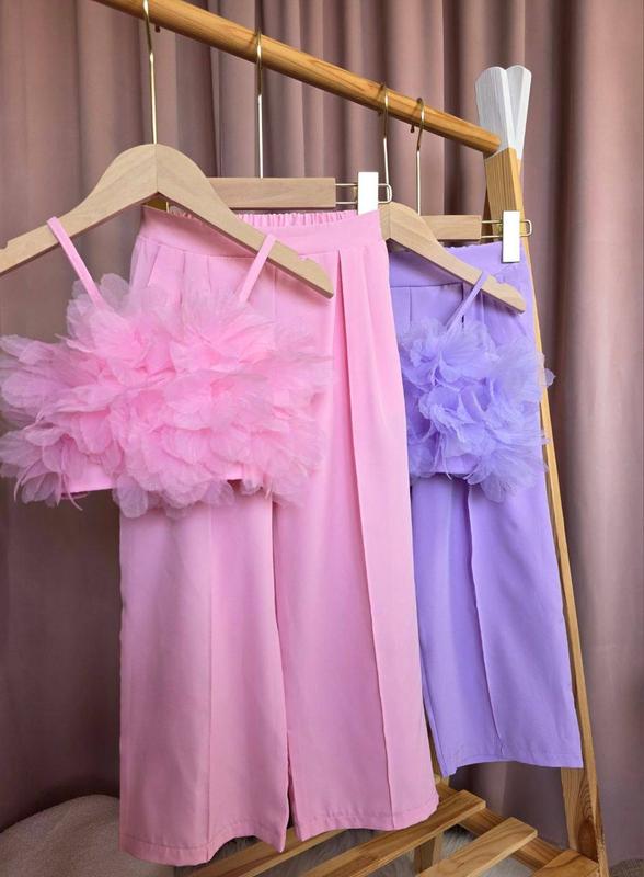 ЗАМІРИ: 4 - штани довжина 63 пояс 24 крок 41, топ висота топа(без лямок) 15 ширина 29 5 - штани довжина 69 пояс 25 крок 45, топ висота топа(без лямок) 16 ширина 30 6 - штани довжина 75 пояс 27 крок 49, топ висота топа(без лямок) 16 ширина 31 7 - штани довжина 80 пояс 27 крок 53, топ висота топа(без лямок) 17 ширина 34 Штани - моделька носиться на талії, орієнтир на крок, щоб підійшли по довжині. Топ - звертайте увагу на ширину.