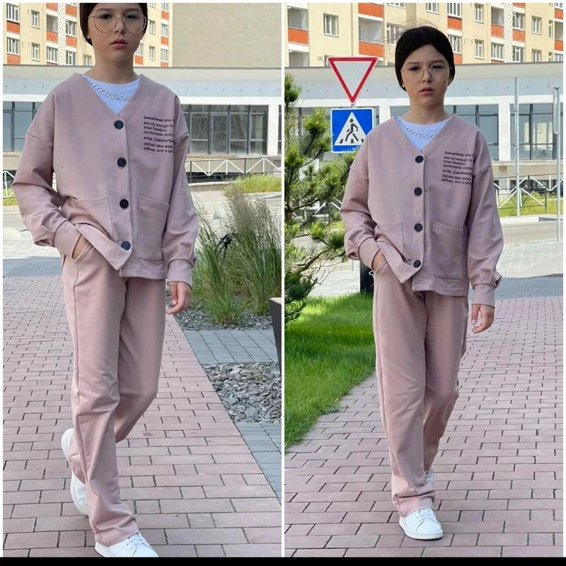 Дуже красивий та оригінальний костюмчик трійка для маленької модниці, Костюм трійка турецька двонитка пеньє🌿котон 90% Плече приспущене Повномірні виміри зроблені від плеча довжина/рукав/пог/довжина штанів/крок/пояс/довжина топа/п**********/82/58/22/31/31 140-50/42/48/88/62/23/32/33 152-52/43/50/96/66/24/35/35 164-56/45/52/100/72/25/43/37 128-1шт
