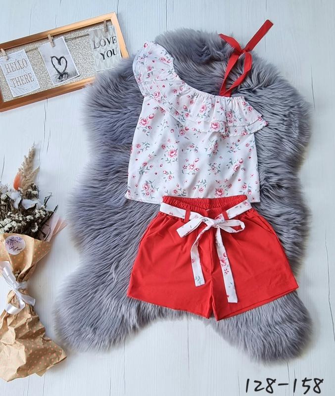 через кнопку купити тільки повна оплата!!! Літній костюмчик Топ+шорти Тканина софт в шортах є кишені Пояс в комплекті РЕКОМЕНДУЮ!!! 146(1 шт)-довжина топа 45,пог 39,довжина шортів 31,пояс 27,поб 45 +-2см