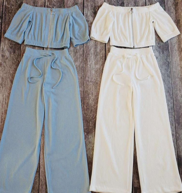 Топ + палаццо. Топ застібається на блискавку. Тканина: рубчик, гарної якості. Заміри: 140 штани довжина - 81см, крок - 61см, пояс - 25см, напівобхват бедер - 42см. топ довжина - 26см, напівобхват грудей - 35см. 146 штани довжина - 86см, крок - 65см, пояс - 26см, напівобхват бедер - 44см. топ довжина - 27см, напівобхват грудей - 37см. 152 штани довжина - 90см, крок - 68см, пояс - 27см, напівобхват бедер - 45см. топ довжина - 28см, напівобхват грудей - 39см. 158 штани довжина - 93см, крок - 70см, пояс - 28см, напівобхват бедер - 48см. топ довжина -30см, напівобхват грудей - 41см.