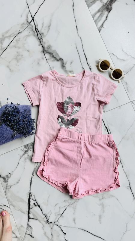Чудовий набір Рожева футболка з паєтками - 92-98 см Шорти рожеві - 2-3 роки ( 92-98 см) Можна разом 199₴ Якщо окремо Футболка- 99₴ Шорти -99₴
