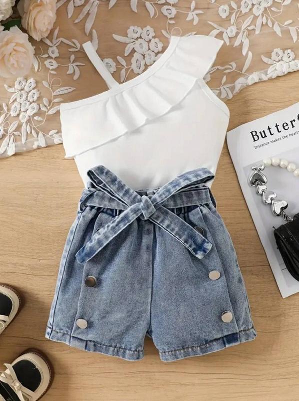 майка стрейч коттон джинсові шорти пояс на резинці Розмір 2-6 років