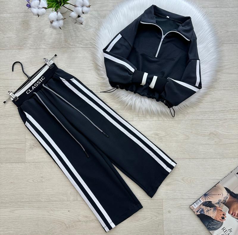 через кнопку купити тільки повна оплата!!! Світшот з трендовим комірцем на блискавці 🥰 В боках затяжки 👌🏻 Шнани-палаццо на широкій резиночці🥰 Діючі куліски та кишеньки ❤️ Колір: графіт Тканина: турецька двонитка 🔝 Виробник: Україна 🇺🇦 ЗАМІРИ ⤵ +/- 1-2см!!! ▪️р.134-СВІТШОТ: довжина від плеча 43см/ рукав від горловини 55см/ ПОГ 47см. ШТАНИ: довжина по бічному шву 82см/ крок 59см/ ширина стегон 43см
