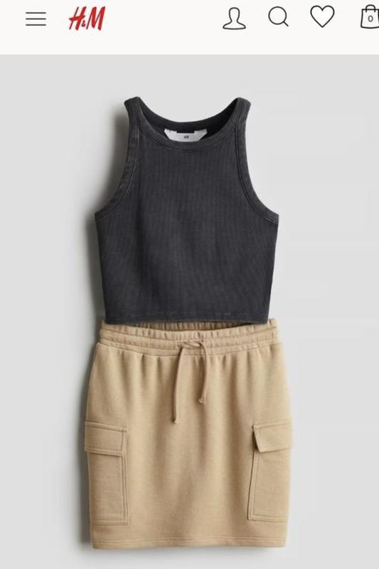 H&m котоновий костюм майка топ у рубчик і спідниця карго літній костюм h&m p.170 с...
