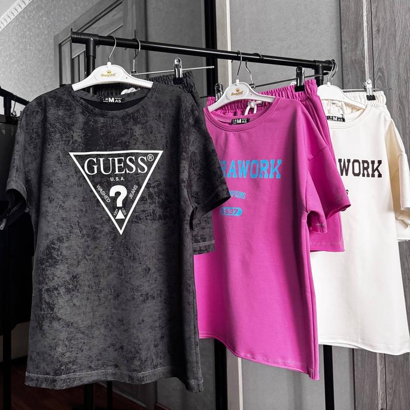 ВИМІРИ: р.140 довж футб/ширина 59/43 довж шорт/стегно/пояс 38/50/29 р.146 довж футб/ширина 60/45 довж шорт/стегно/пояс 41/52/30 р.152 довж футб/ширина 62/48 довж шорт/стегно/пояс 43/53/31 р.158 довж футб/ширина 64/49 довж шорт/стегно/пояс 45/55/31 р.164 довж футб/ширина 65/51 довж шорт/стегно/пояс 46/56/32