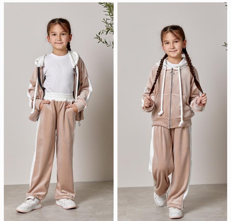 через кнопку купити тільки повна оплата!!!! Стильовий та мʼякенький велюровий костюмчик 🥰❤️🥰 Вільний крій 🤩 Ніжний колір з акцентними білими лампасами 😍 Діючі кишеньки в кофтинці та штанцях ☺️ В штанцях утяжки понизу, що дає можливість носити їх, як широкими, так і завуженими 🥰 Широка резиночка в поясі 👌🏻 Кофтинка на блискавці ⚡️ Тканина: королівський велюр💞 Виробник: Україна 🇺🇦 р.116-1шт р.128-1шт ЗАМІРИ ⤵️ +/- 1-2см!!! ◾р.116- Кофта: довжина від плеча 44см/ рукав від горловини 45см/ ПОГ 44см. Штани: довжина по бічному шву 68см/ крок 49см/ ширина стегон 35см. ◾р.128- Кофта: довжина від плеча 47см/ рукав від горловини 49см/ ПОГ 47см. Штани: довжина по бічному шву 75см/ крок 55см/ ширина стегон 38см.