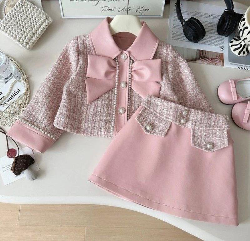 💫 Костюм для дівчинки як із модного журналу Жакет + спідниця Ідеальний для свята, фотосесії або просто стильного образу ✨ ✔️ Тканина: шанель + еко шкіра — виглядає дорого і трендово ✔️ Підклад: нейлон у спідниці — для зручності та комфорту ✔️ Жакет: на гудзику, класичний крій ✔️ Спідниця: ззаду резинка — гарно сідає по фігурці ✔️ Рукав: замір від плеча 📏 Розміри: 90 см — Жакет: 31×33×33 см | Спідниця: 26×20 см 100 см — Жакет: 32×34×34 см | Спідниця: 26,5×21 см 110 см — Жакет: 34×35×37 см | Спідниця: 28×23 см 130 см — Жакет: 40×38×42 см | Спідниця: 32×24 см 140 см — Жакет: 42×40×45 см | Спідниця: 33*25 см