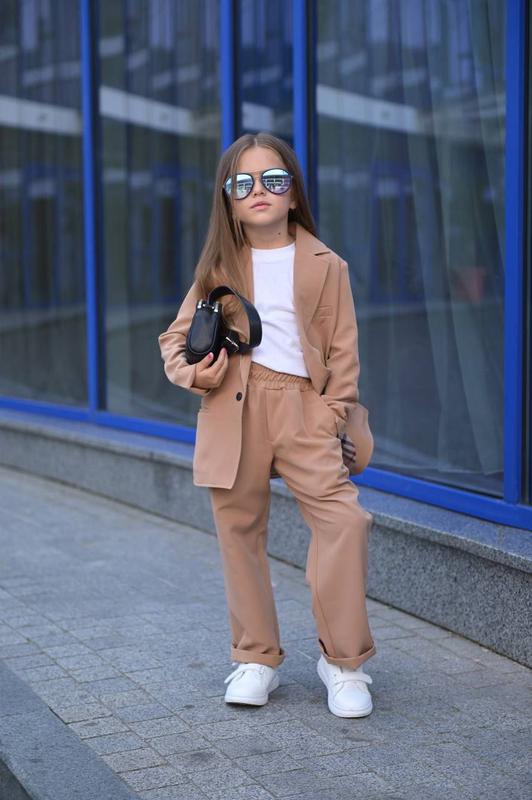 ↪️Класичний костюм ↩️ Костюмна тканина турецького виробництва. Пояс на резинці. На міцній підкладці. Розміри: 116-122,122-128,128-134 Колір- бежевий