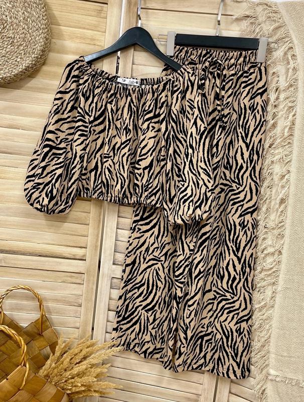 костюм блуза та палацо ніжність, та зручність поєднуються у ньому неперевершеним образом. Тканина жатка гарної якості ПОВНОМІРНІ Якість супер! ір зріст/довж. блузки по середині/пог/рукав повна довжина/довж.штанів/крок/пот/поб похибка+-2см 140-146/31/43/45/91/65/25/43-1шт