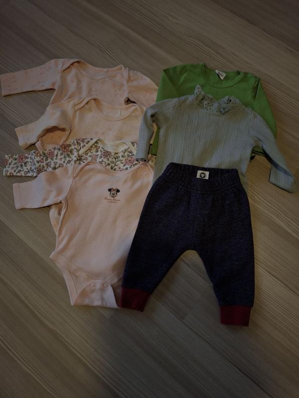 Набір для дівчинки.Боді на довгий рукав ,дві кофти і штани утеплені. Бренди Lupilu,S&A, Green Coton. Розмір 56-62