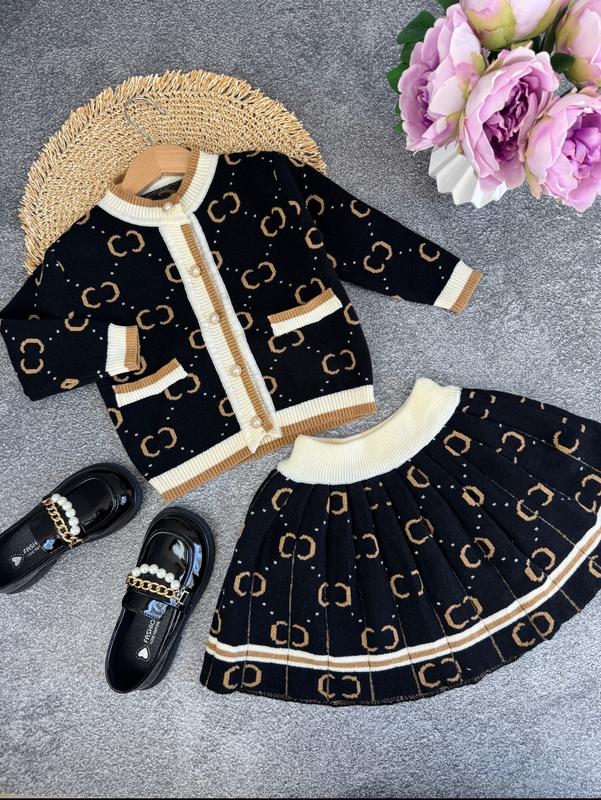 В'язаний костюм для дівчинки колір чорний з молочним модний малюнок