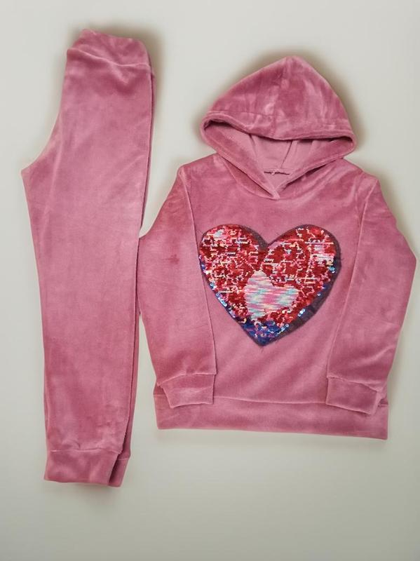 Новий костюм на зріст 116 тканина велюр, колір румянцевий Декор пайєтка перевертень