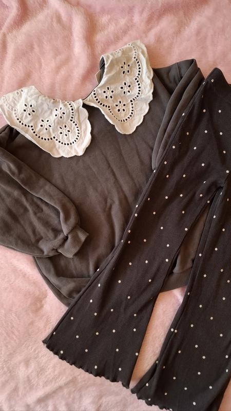 Кофта тепла з флісом штани на ризинці із дефектів маленька крапка але її не сильно видно штани темні Довжина штани 60 см рукав 43 см
