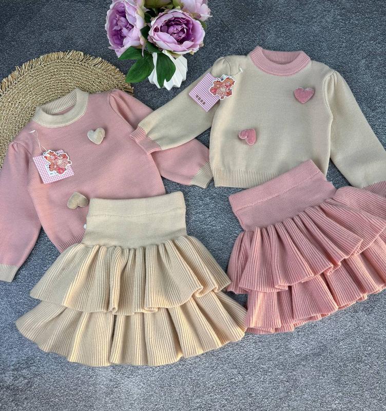 Новинка 2025 🥰🥰🥰 Стильний образ двійка в наявності ❤️ Кофточка +спідничка Дуже гарна кольорова гамма та поєднання кольорів 🥰 Сердечка ❤️ на заколках ,можна знімати та переміщати в інші місця Тканина -плотна машинна в‘язка Дуже приємний до тіла,м’який та теплий 🔥 Можна комбінувати з великою кількістю образів . Носити як разом ,так і окремо 90 – спідниця довжина 29 см, пояс 20 см кофточка довжина 33 см,шир 29 см, рукав 37 см (4 шт) 100 – спідниця довжина 31 см, пояс 21 см кофточка довжина 36 см, шир 31 см, рукав 40 см (4 шт) 110 – спідниця довжина 32 см, пояс 22 см кофточка довжина 38 см, шир 33 см, рукав 43 см (4 шт) 120 – спідниця довжина 34 см, пояс 23 см кофточка довжина 40 см, шир 35 см, рукав 47 см (4 шт) 130 – спідниця довжина 35 см, пояс 23 см кофточка довжина 43 см, шир 36 см, рукав 49 см(6 шт) Замір рукава від горловини нс