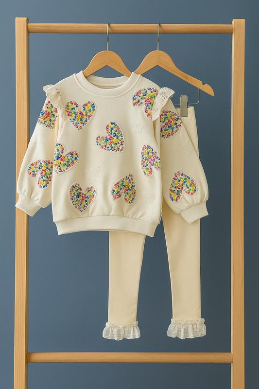 Молочний бежевий костюм для дівчинки з сердечками кружево