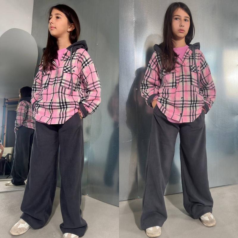 ‼️новинка‼️ Комплекти Сорочка + штани ! самі трендові поєднання кольорів ! Флісові штани знизу на фіксаторах ( носимо як палацо так і карго !) Сорочка байка на кнопках з кишенями і капюшоном ✅Мод 991 🪡розміри: 134-140 ⚠️Доступні до заказів 💟 якість гарантовано