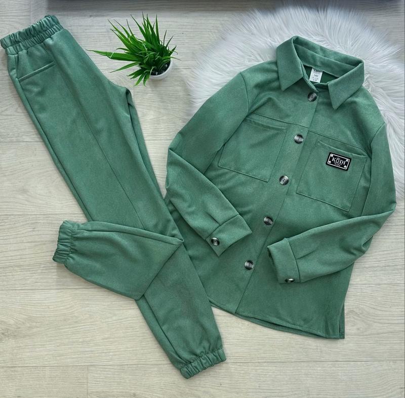 через кнопку купить только полная оплата!!! Стильный костюм для девочек 🌸🌸🌸🌸🌸🌸 В рубашке по всей длине и на рукавах есть пуговицы, два действующих кармана. В поясе брюк есть резиночка, хорошо тянется,манжет резинка 💛💛💛💛💛 Ткань: замш-диагональ❣ Производитель: Украина 🇺🇦 р.146-1шт ЗАМІРИ ⤵ +/- 1-2см!!! ◾р.146-Сорочка: длина 59см/ рукав от горловины 60см/ ПОГ 48см. Брюки: длина по боковому шву 88см/ шаг 66см/ ширина бедер 45см.