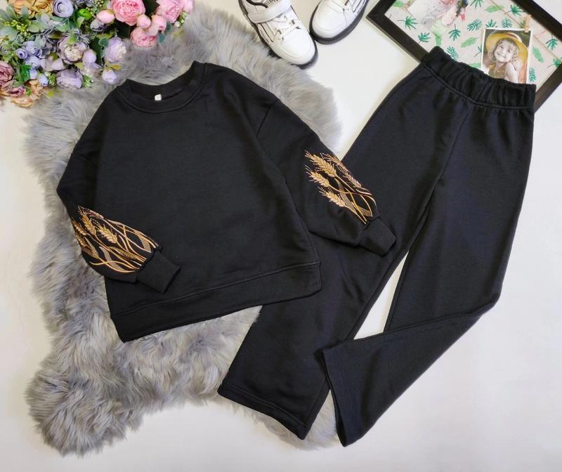 Неймовірна красивий костюм з улюбленою вишивкою на рукавах Колоски🥰 146/152р- довжина кофти 59, пог 48, рукав від горловини 63, довжина штанів 99, крок 66, пояс 28, поб 45 ±1-2см Тканина преміум якості-петля Турція🔥 Штани палаццо на резинці Манжет і рукава рібана трикотаж 👉За Безпечну оплату уточнюйте. ⚠️Через кнопку КУПИТИ тількі по повній оплаті, тому не тисніть її, до уточнення деталей. 🚚Нова пошта, є наложка з передоплатою 🚛 Укрпошта- +5грн пакування (укрпоштою наложки немає ❗️) По оплаті і доставці уточнюйте додатково, до купівлі! Повернення є при відмові у відділенні, робіть свій вибір обдуманно. Оглядайте товар у відділенні, претензії з дому не розглядаються! ток