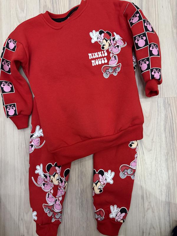 Теплий костюм для дівчат, Тринитка на флісі, Оздоблений малюнком з Міккі Маусом.
