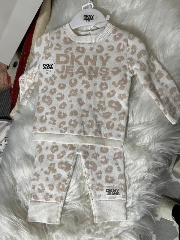 Це дитячий комплект із двох предметів DKNY Jeans з леопардовим принтом.