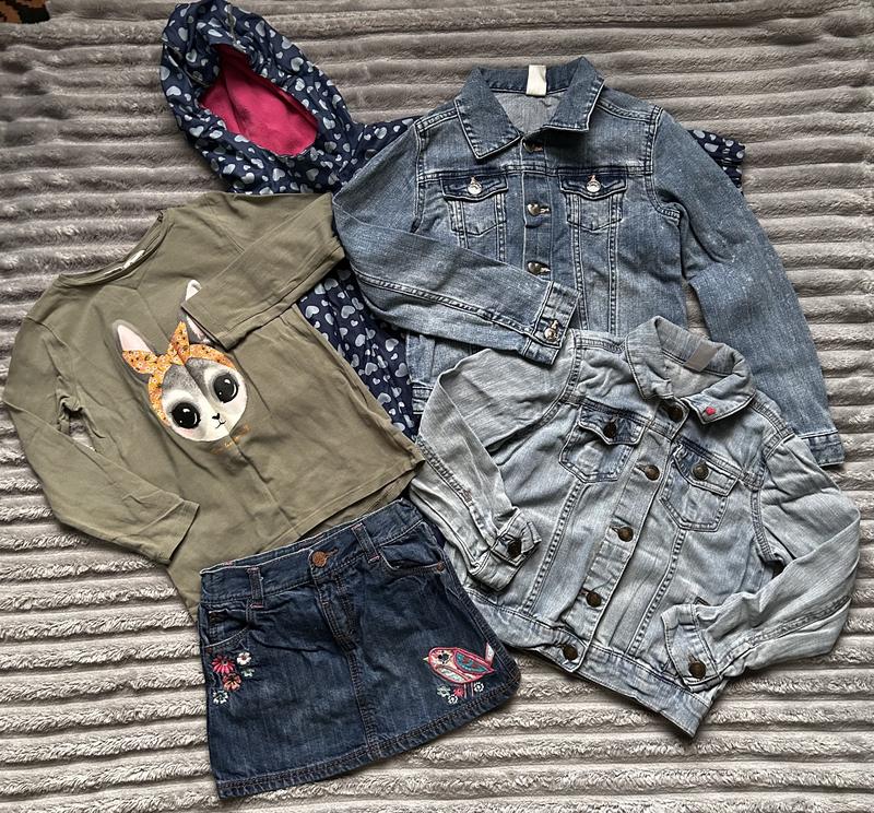 Куртка, дві джинсовки, джинсова спідниця, кофтинка.