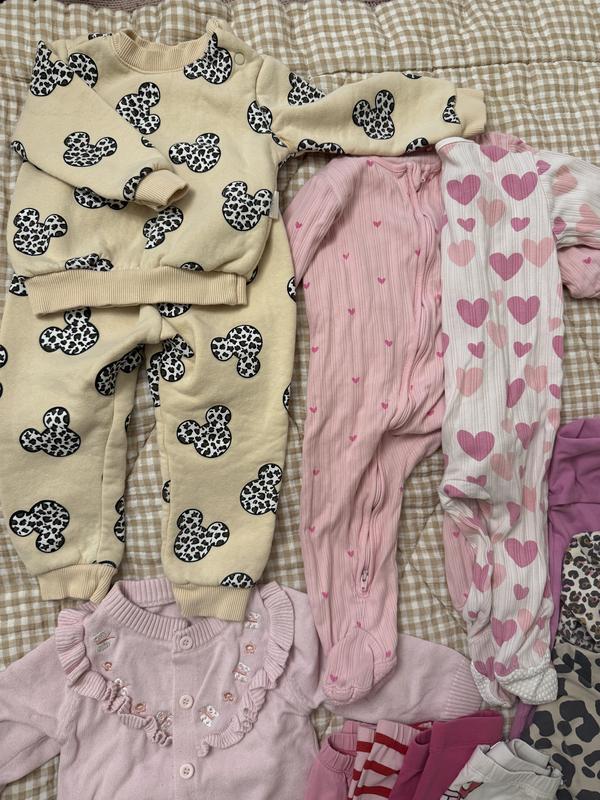 Чоловічки Next 80см (9-12міс) 3шт Спальні чоловічки з ніжками 80см (9-12міс) 2шт Теплий костюм Міккі 72см Костюмчик трикотажний 72см Штанці Sinsay, H&M 80см 4шт + кілька пар носочків в гарному стані Усі речі після однієї дитини.