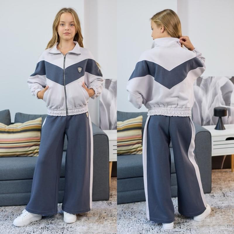 Костюм в який не можливо не закохатися кофта на блискавці з кишенями широкі брюки понизу на стяжці в поясі під резинку Тканина трьохнитка петля на легкому флісі СУПЕР ЯКІСТЬ! ціна 1620 грн зріст/довж./ширина по резинці/рікав від горловини/ крок/ пот/пос похибка+-2см 140-146/47/32/55/88/60/25/50-1шт 146-152/49/33/57/91/63/26/52-1шт