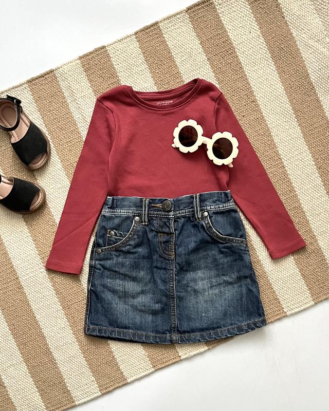 Набір реглан рубчик+спідничка 2-3р (92-98)🌸 Стан - ідеальний Довжина реглана Primark - 35, груди - 27, рукав - 32
