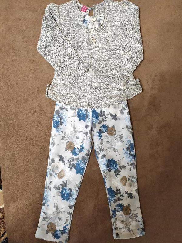 Новий костюм для дівчинки! Без бирки. Пролетіли з розміром. Штанці з начосом. Заміри: Кофта - довжина - 40-43 див. - об'єм грудей - 31 див. - рукав від плеча - 39 див. Штани - довжина - 62 див. - кроковий шов - 44 див. Додаткова інформація на вимогу!