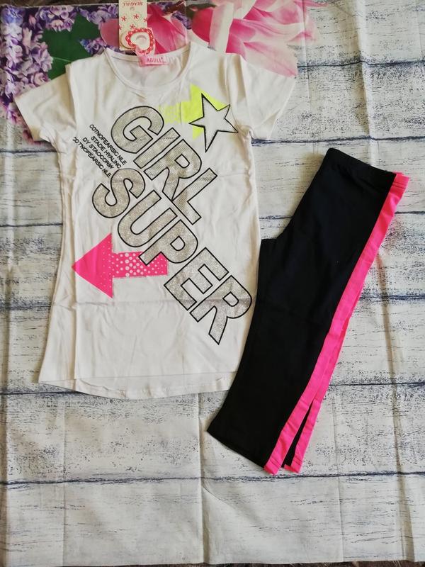 Літні комплекти для дівчаток хорошої якості від фірми Seagull Угорщина Розмірний ряд 8,10,12, 14,16 років Туніка +бриджі 12 довжина туніки 61 пог 36 бриджі довжина 53 піт 29 біла туніка +темно сині бриджі