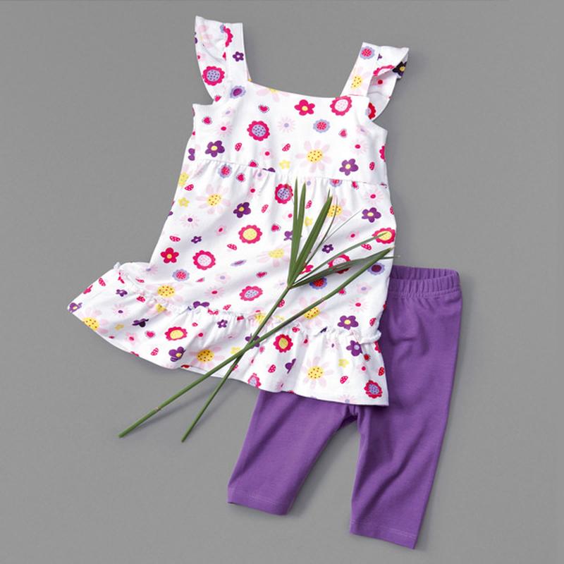 Летний комплект ТСМ: топ + леггинсы 3/4 Верх топа - двойной, спинка присобрана резинками. Бретели на пуговицах, что позволяет регулировать их длину. Размер 86/92. Замеры: длина топа от подмышки 37 см, ширина под руками 24 см; леггинсы длина 32,5 см, шаг 16,5 см