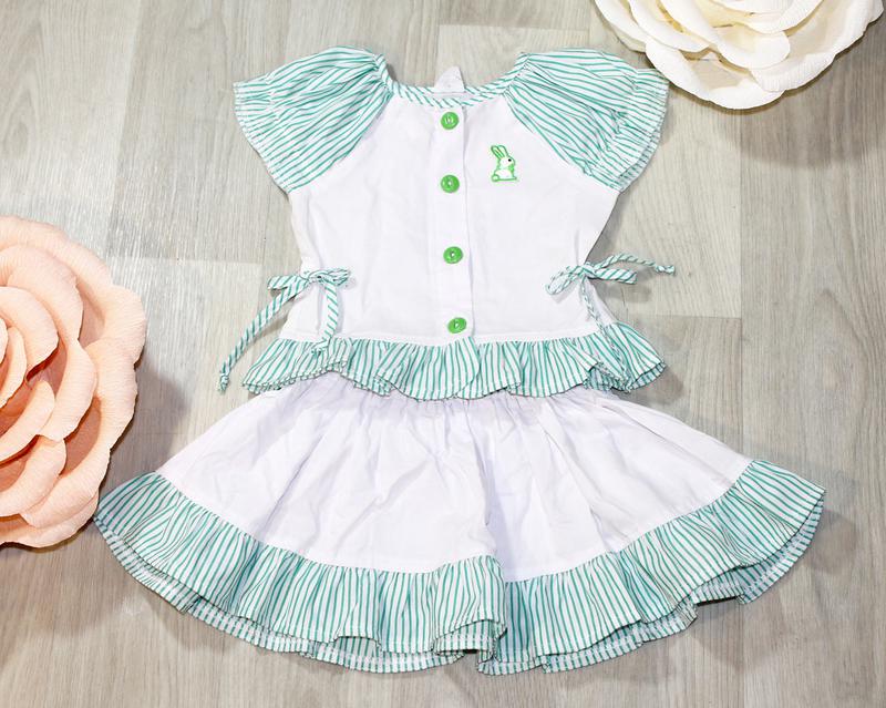 Костюм на дівчинку річний Комплект складається з блузочки і спіднички. Спідничка на гумці. Блузочка з невеликим рукавчиків, на гудзиках Матеріал: бавовна Колір: як на фото Розмір: 104 років