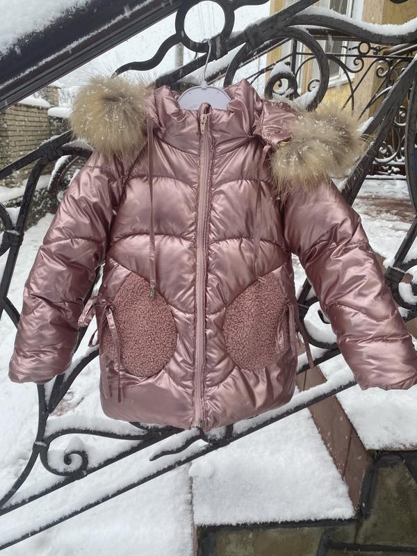 Зимова куртка для дівчинки розмір 92-104, натуральний мех на капюшоні, в ідеальному стані