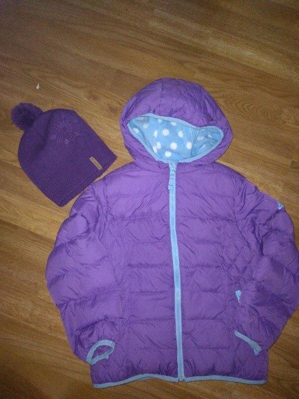 Пуховик для дівчинки на 6років 116р. фіолетовий Рукав 43 Рукав від горла 51 довжина 49 ПОГ 40 ПОТ 38 На теплій флісовій підкладці Холодна весна осінь шапка у подарунок відмінний стан