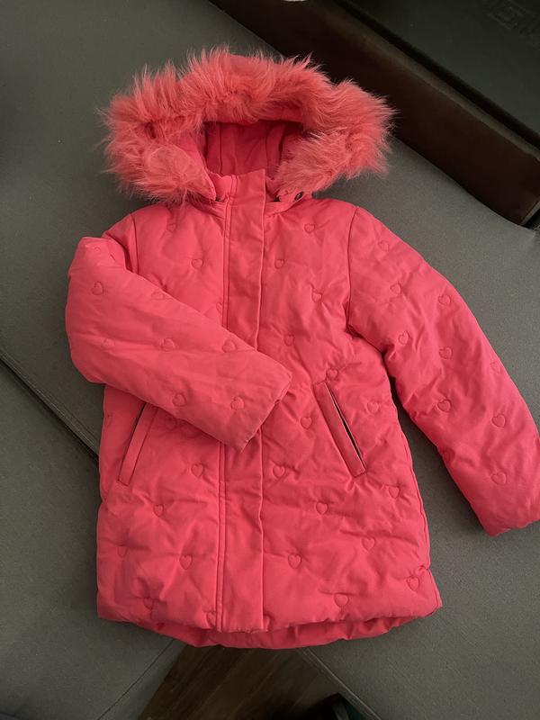Дитячий пуховик, зимове напівпальто! На зріст 104-116! Прикриває сідниці) Яскраво малинового, насиченого кольору!!! Утеплене синтепухом, плотна вітро- та водо-непроникна тканина, на спині утеплена флісовою підкладкою! Капюшон відстібається, хутро на капюшоні відстібається, на рукавах манжети! Дуже тепла та в ідеальному стані, після 1 дитини!