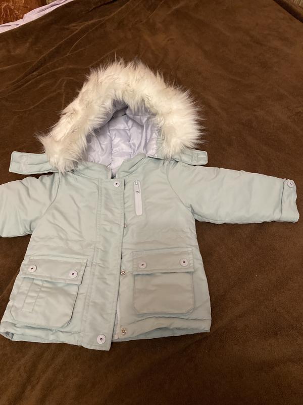 Дуже гарний пуховичок розмір 80см.,мех на ракльобках знімається.