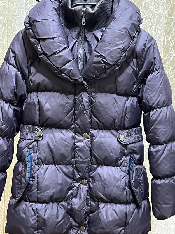 удлиненный,на пуху.Длина по спинке 62 см.,напол талия 42 см., напол груди 46 см.,рукав от шеи 64 см.Темно сливового цвета