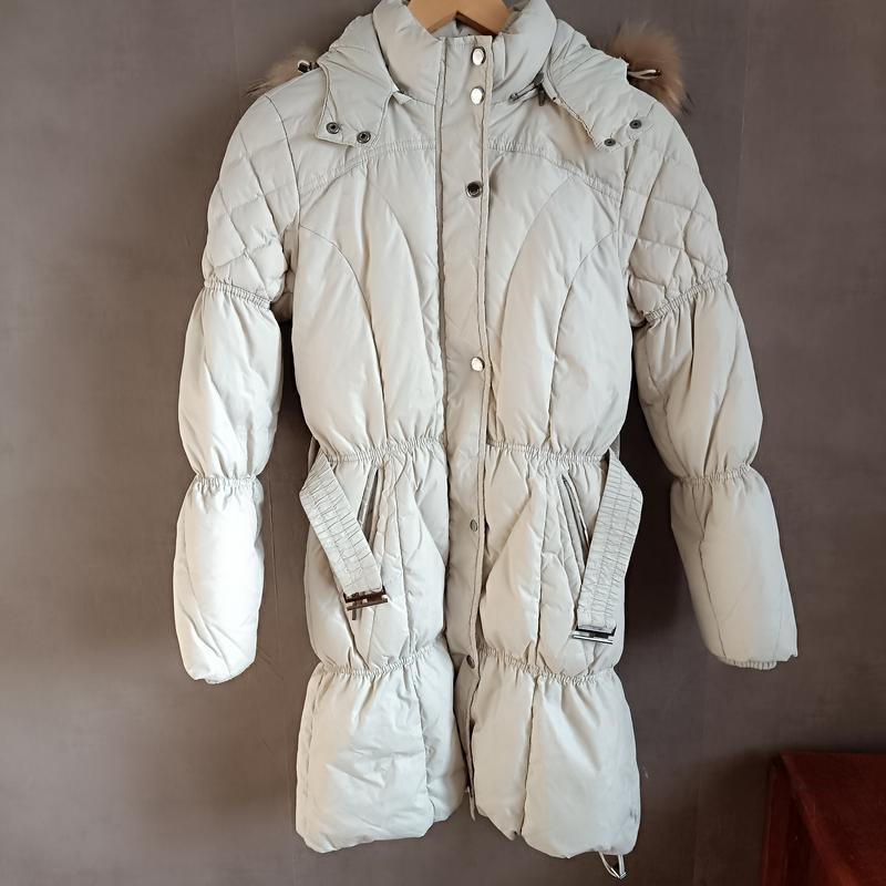 пальто пуховик довжина 82 ширина підмишками 45 см рукав від плеча 60см блискавка подвійна, можна розстібнути внизу, якщо треба в одежі сісти в рукаві додатковий внутрішній манжет закривається на блискавку та закльопки ( одна закльопка нефункіонує) хутро на капюшоні натуральне, капюшон відстьогується. Для дівчини 12-14 років