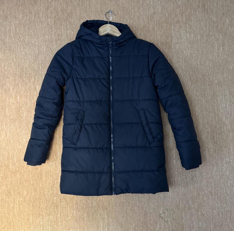 В гарному стані пальто-пуховик. Темно синього кольору.